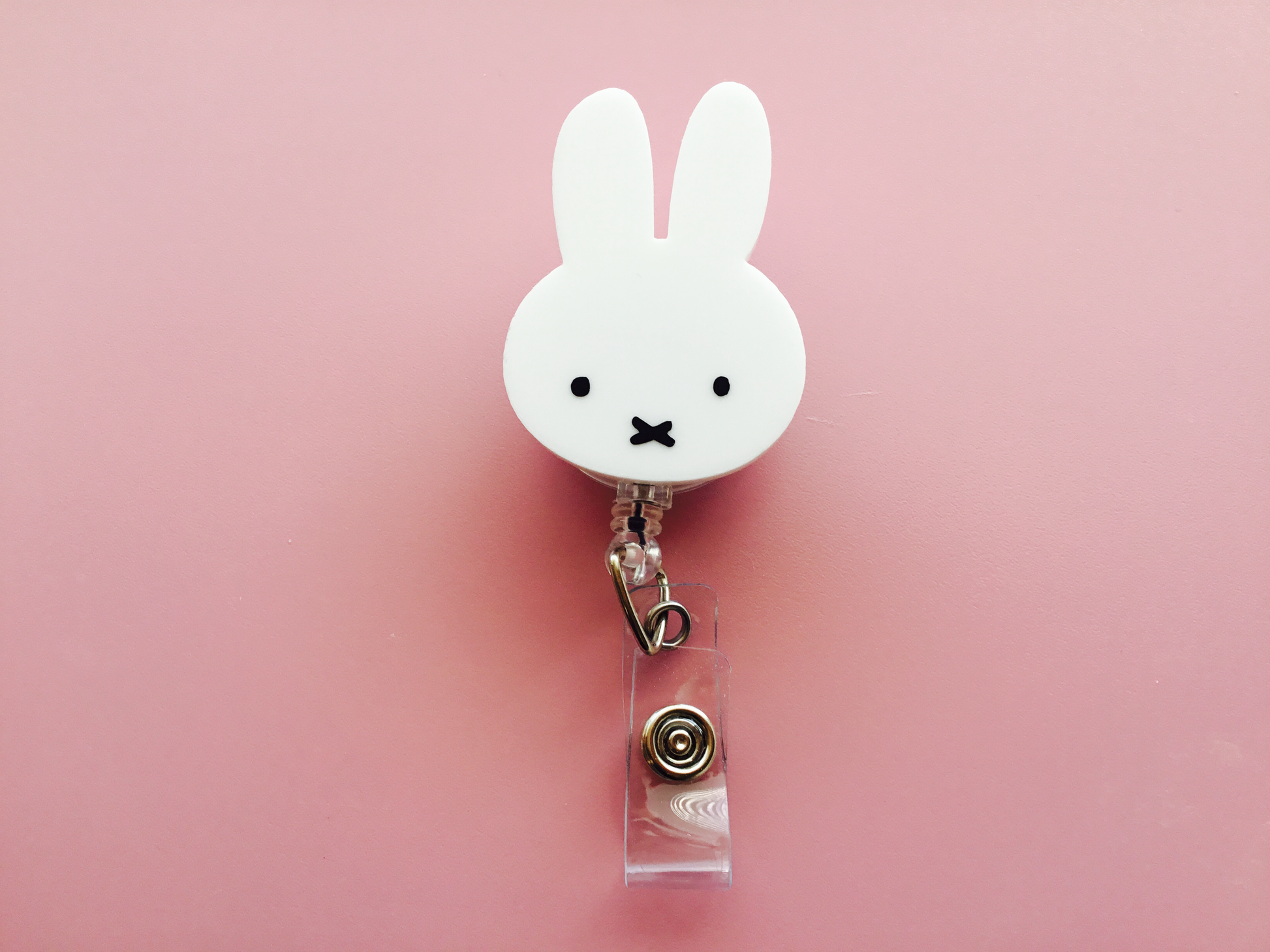 Hop into style with this adorable white bunny badge reel!