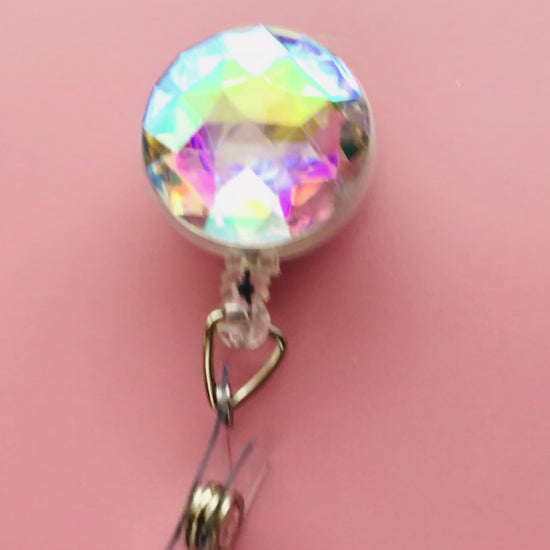 This holographic badge reel brings the sparkle and glam to your everyday carry.