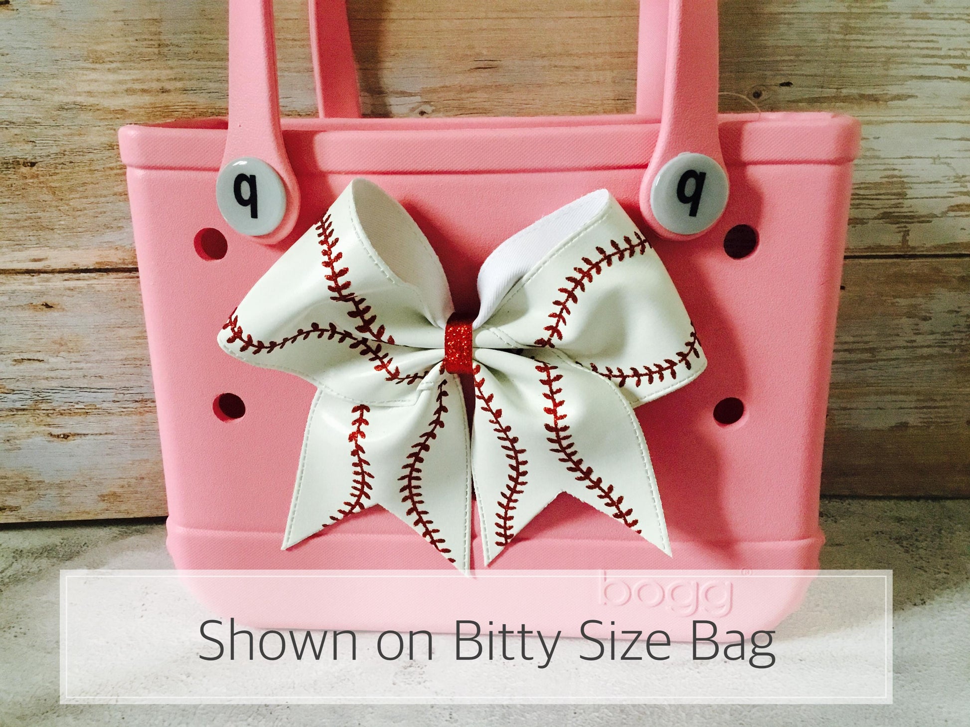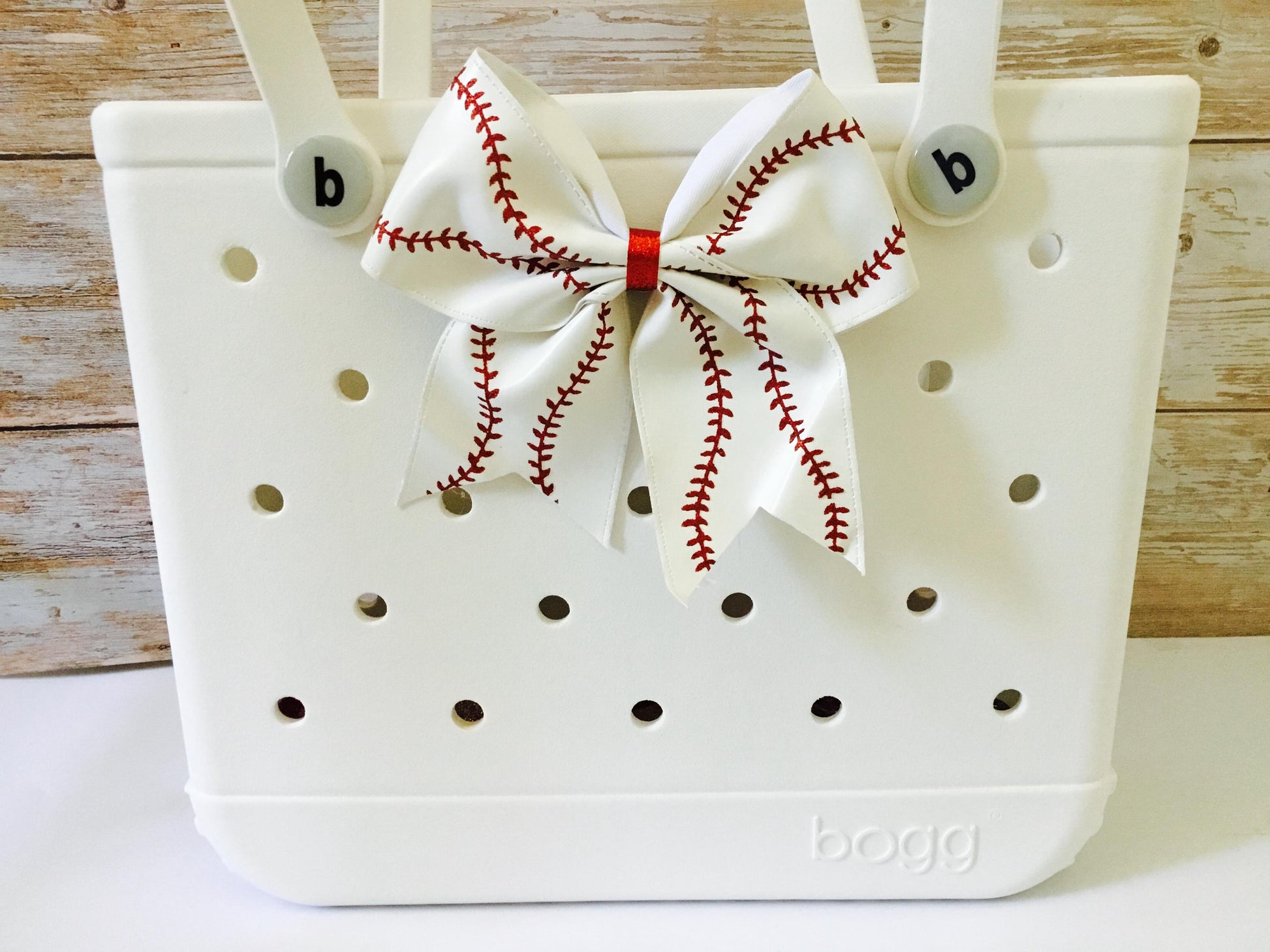 Transform your Bogg Bag into a head-turner with this jumbo baseball bow charm in faux leather.